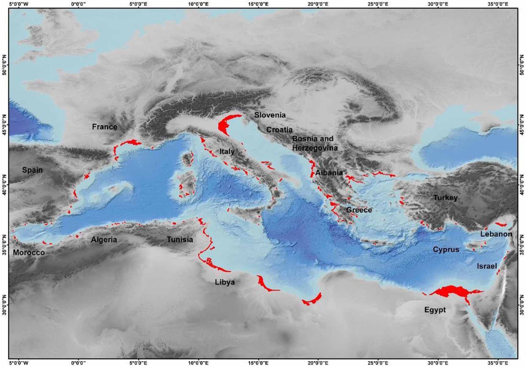 Proiezioni dell’aumento del livello del mare nelle coste mediterranee per gli anni 2030-2150 (Vecchio A., Anzidei M., Serpelloni E., Environ. Res. Lett. 19 014050)